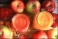 Fototapeta - Soki z marchwi, jabłka i buraka, w tle owoce i warzywa