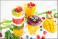 Fototapeta - Wielowarstwowe smoothie z żółtych, zielonych i czerwonych owoców i warzyw