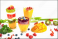 Fototapeta - Wielowarstwowe smoothie w szklankach, wokół rozsypane owoce
