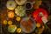 Fototapeta - Cisto z dyni na jasnym talerzu, obok znajdują się dynie, pigwa, szyszki, liście, orzechy, kawa i świeczka