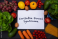 Fototapeta - Flat lay, mockup, biała kartka z tekstem jelito drażliwe otoczona warzywami i owocami, zdrowa dieta i odżywianie