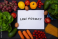 Fototapeta - Flat lay, mockup, biała kartka z tekstem low FODMAP otoczona warzywami i owocami, zdrowa dieta i odżywianie