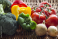 Fototapeta - Warzywa na wiklinowej teksturze