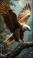 Fototapeta - Zbliżenie majestatycznego orła na tle leśnym. Dynamicznie rozłożone skrzydła, intensywny wzrok i szczegółowe pióra ukazują jego siłę i piękno. Idealne ujęcie natury i dzikiego świata.