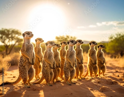Fototapeta - Złota surykatka – czujność na tle pustyni