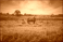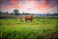 Fototapeta - Dzikie konie pastwisko zachód słońca