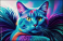 Fototapeta - Kolorowy, gradientowy i akrylowy kot abstrakcja. Generative AI