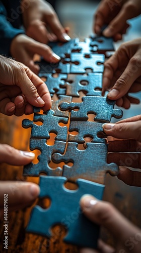 Teamwork Hands assembling puzzle pieces