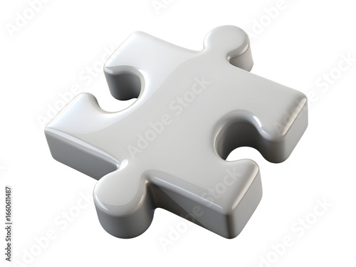 >Naklejka>3d illustration of a single, white jigsaw puzzle piece isolated on a transparent background, representing a concept of problemsolving and connection