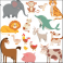 Child cartoons elephant, gull, dolphin, wild animal. Pet, farm and jungle animals vector cartoon illustration collection