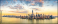 Aerial panorama of New York City skyline at sunset with both midtown and downtown Manhattan