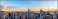New York City skyline from roof top with urban skyscrapers at sunset. New York, USA. Panorama image.