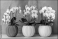 Fototapeta - Eleganckie doniczki z pięknymi orchideami w odcieniach bieli i różu, ustawione w harmonijnej kompozycji na tle neutralnej ściany.