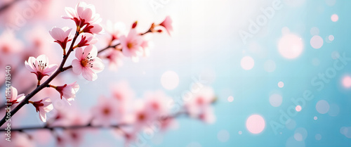Delikatne kwiaty wiśni w pełnym rozkwicie na gałęzi, na tle ciemnego nieba