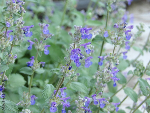 Fototapeta - Zbliżenie na niebieskie kwiaty kocimiętki