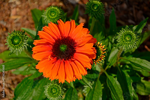 pomarańczowe kwiaty jeżówki, odmiana jeżówki "SunSeekers MINEOLA", pomarańczowa jeżówka, orange coneflower flowers, Echinacea