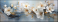 Fototapeta - Białe kwiaty na niebieskim tle.