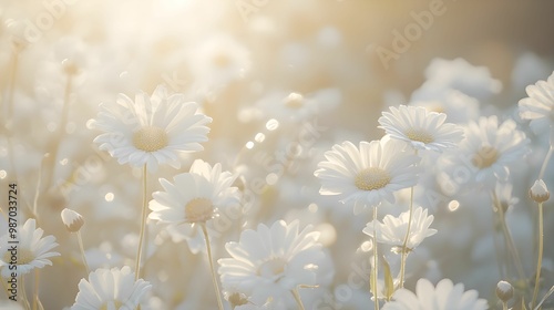Fototapeta - stokrotki, pole, białe kwiaty, fotografia, hiperrealistyczne, z góry, pastelowe kolory, beżowe tony, delikatne, miękkie, rośliny, natura, przyroda, tapeta, kwiaty polne, kwitnienie, wiosna, lato, natu