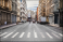 New York City asphalt road on busy intersection streets with car traffic at daytime