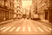 Fototapeta - New York City asphalt road on busy intersection streets with car traffic at daytime