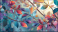>Naklejka>Tematy>Abstrakcje>Elegant colorful with vibrant leaves hanging branches illustration background. Bright color 3d abstraction wallpaper for interior mural, Generated by AI
