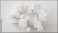 Chaotic cubes with copy space. White abstract geometric background. 3d rendering cubic minimal composition for corporate design template.