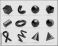 Realistic 3D black metal Geometric Shapes Objects. Realistic geometry elements isolated on white background with metallic color gradient.