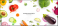 >Naklejka>Tematy>Owoce>Creative layout made of tomato, cucumber, pepper, onion, carrot, beetroot, eggplant, cabbage, garlic, broccoli and green beans on the watercolor background. Flat lay. Food concept.