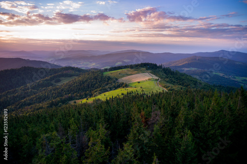 Fototapeta - zmierzch w Gorcach. Zachód słońca wgórach