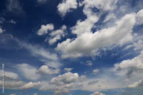 Fototapeta - Białe chmury na niebie koloru niebieskiego.