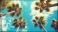 >Naklejka>Tematy>Niebo>Niebieskie niebo i palmy widziane z perspektywy od dołu w stylu retro. Klasyczne, letnie tło, które idealnie pasuje do tematów związanych z plażą, tropikalnymi wakacjami i podróżami.