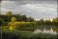 Fototapeta - Krajobraz z jeziorem i roślinnością ciągnącymi się po horyzont na tle pieknego nieba.