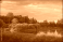 Krajobraz z jeziorem i roślinnością ciągnącymi się po horyzont na tle pieknego nieba.