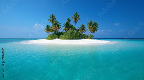 >Naklejka>Tematy>Plaża>Wakacje na bezludnej wyspie w tropikach to spełnienie marzeń o prawdziwej ucieczce od zgiełku codziennego życia. Malownicze widoki, dzika natura i brak ludzi.