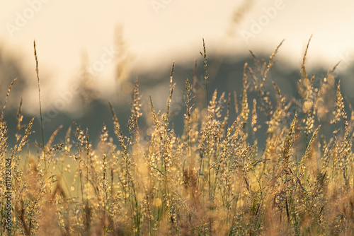 Fototapeta - Krajobraz, trawy o złotej godzinie