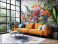 Fototapeta - Wygodny salon domu z kwiatami na ścianie.