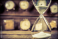 Aged hourglass with flowing sand
