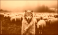 Wolf disguised in sheep's clothing amidst a flock of sheep, symbolizing deception, cunning, and hidden intentions