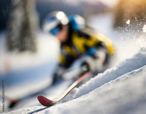 Fototapeta - Upadek podczas jazdy na nartach