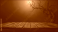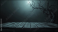Stary, zużyty drewniany stół z wyraźnymi śladami użytkowania zajmuje centralne miejsce w mrocznej scenerii.