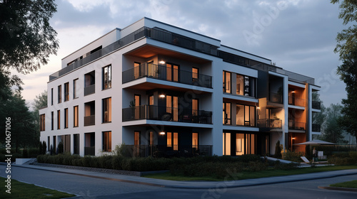 Fototapeta - Wielopiętrowy budynek mieszkalny z klasyczną architekturą przyciąga wzrok swoimi stylowymi balkonami i ozdobnymi detalami.