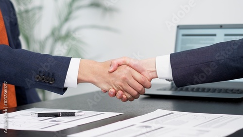 Fototapeta - ミーティングで握手をするビジネスマン