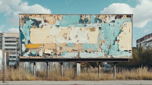 Blank Billboard on Weathered Building: A Rustic Urban Scene