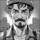 >Naklejka na meble>Mężczyzna wykwalifikowany robotnik idzie do pracy przez miasto - ilustracja komiksowa powstała przy współpracy z Generatywną AI . Murarz lub brukarz w drodze do ( z?!) pracy.