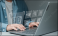Fototapeta - Learn to train in front of the computer. Internet e-learning lessons and online webinars People attending online lessons on digital screens Internet Technology Education Features..