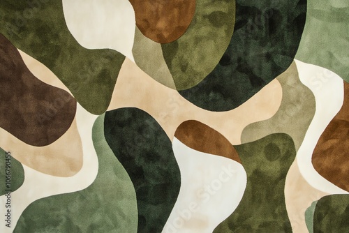 Fototapeta - Design organique avec formes abstraites dans des tons de vert et marron