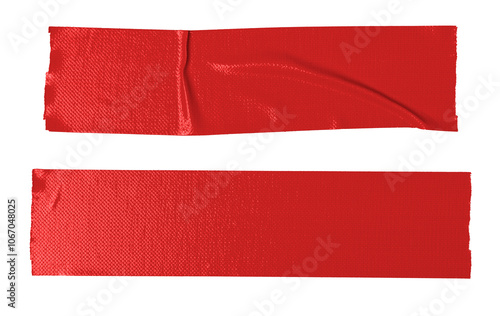 Fototapeta - Red adhesive sticky tapes in equal sign shape isolated cutout in transparent background. Concept of accept, approve and correct.
