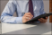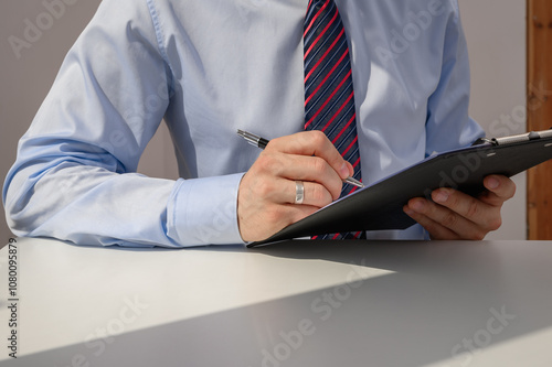 Fototapeta - Ankieter przeprowadzający badanie zapisuje coś na kartce