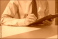 Ankieter przeprowadzający badanie zapisuje coś na kartce