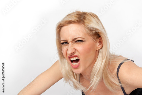Young attractive blonde woman angry